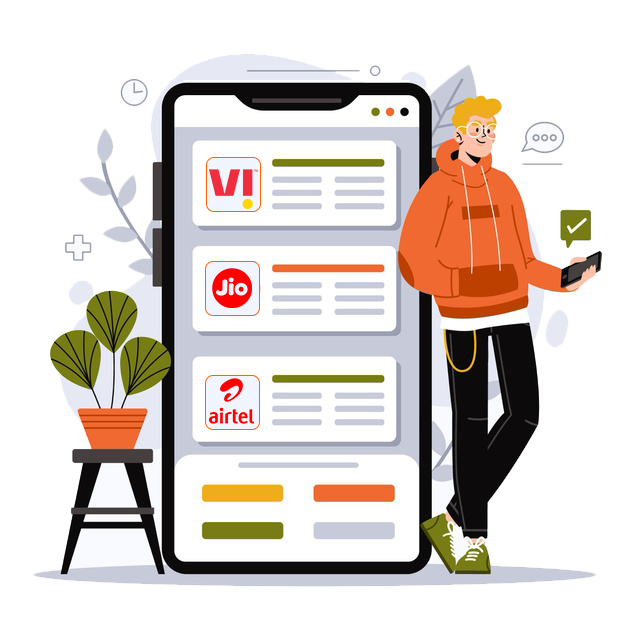 Instant mobile prepaid, postpaid and DTH recharge for all major operators including Airtel, Jio, Vi, BSNL, and Tata Play. Fast, reliable, and commission-based earning opportunities.